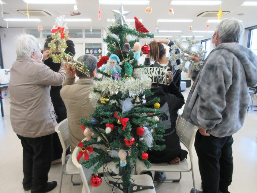 ツリーを2本と、室内・廊下をモールや電飾などで飾りつけ。フロアが一段と明るく楽しい雰囲気になり、12月26日(金)のクリスマス会がより一層楽しみになったと皆さん笑顔で盛り上がっておられました。