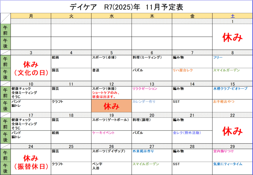 ご利用や各プログラム詳細については、ぜひ当ホームページのデイケアページをご覧ください。